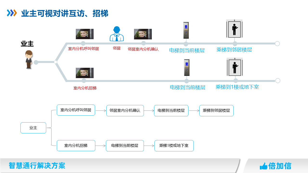 5、住宅項目訪客可在可視對講呼叫業主,實現呼梯聯動招梯和乘梯;